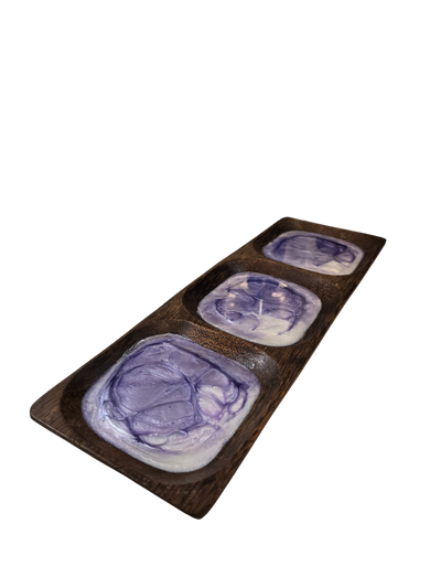 Plateau / 3 Dessous de verre / vide poche - Bois de cocotier L 35 cm × l 10 cm